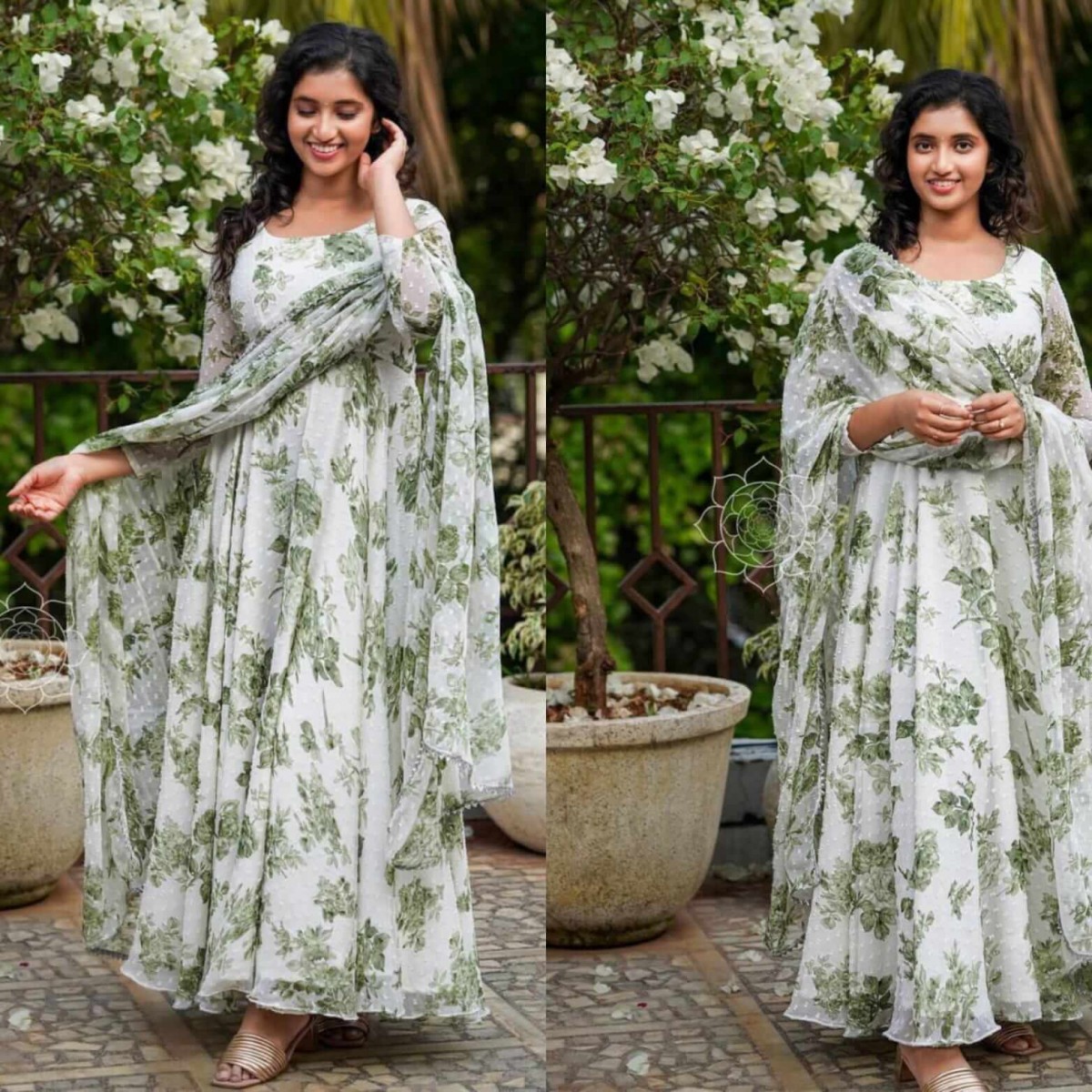 Anarkali floral gown dupatta set