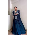 Royal Blue Butti Stylish Wedding Gown and Dupatta Gown Fabric Taffeta Silk Fully Stitched, Gown Leng..
