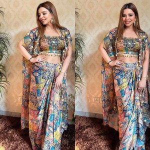 Koti Fabrics :Fiona Silk With Coin Lace And Print Work