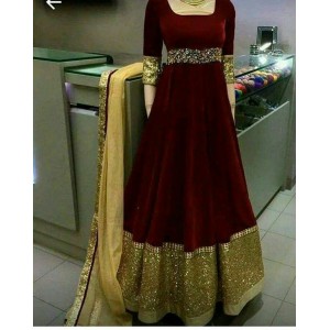 Maroon velvet Flared Anarkali Designer gown