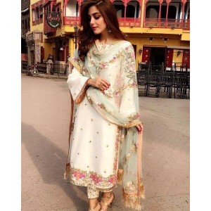 Want to get prepared for a function and want to be classy,White Color Ready made Anarkali Gown with ..