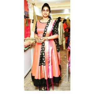 Pink Color Long gown with heavy Banarasi Dupatta