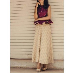 Reception Party Outfit Silk Peplum Top with Skirt