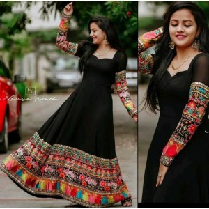 Stunning Black Color South Indian Fashion Style Party wear Full Stitched Gown