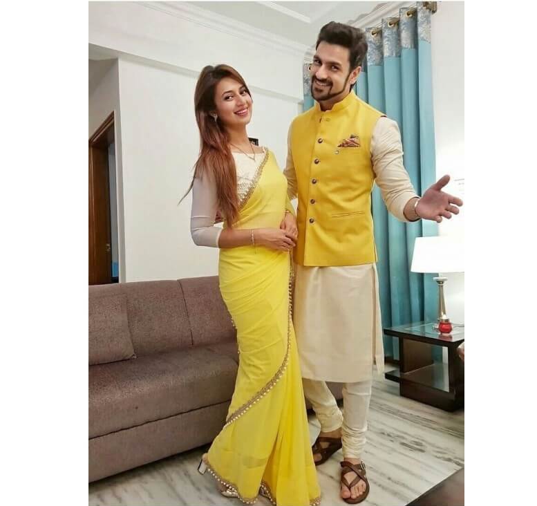 Divyanka Tripathi worn Yellow dress is the best choice for Haldi function it looks sober and yet dashing. Dress is madeup of Georgette Fabric and carved with beautiful thread work. This stylish Salwar Suit is worth buying for Haldi Ceremony.