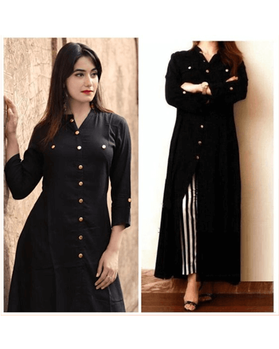 When we consider the features of Abayas, we happen to notice that this is a type of attire which covers entire body leaving out head, hands and feet. It is not Clear if the same goes with abaya Kurtis since they're all designer Kurtis and opt to be cold shouldered, sleeveless etc. But abaya style kurti which is all about being floor length, loose fitting and decent rocks over the Kurtis variety. The attempts and experiments to give them rich designer looks count a lot. That is how abaya style kurti stand sharply to be a perfect fit for high events.