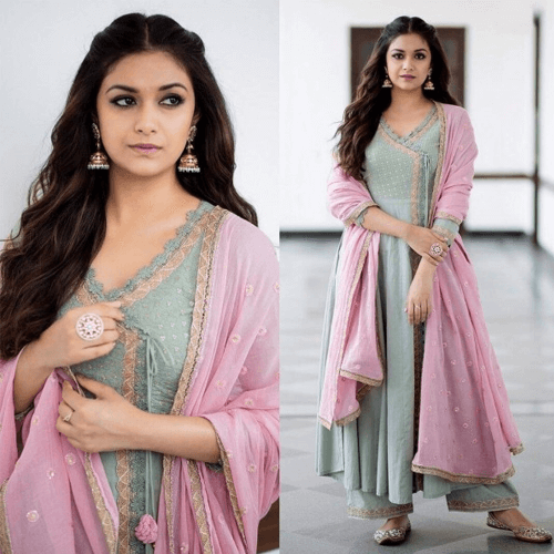 Check out beautiful Angrakha pattern Dress of Keerthi Suresh