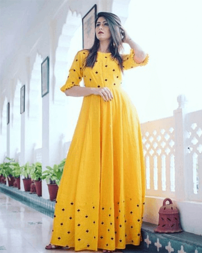Introducing this magnificent style of kurti type having fit blouse which remains active until the breast or slightly below. This brings a sensible high-waisted look. The remaining part which comes as skirt is either moderately or highly voluminous.This type of kurti which we call empire waist kurti is something perfectly womanly. This is your top reason to make few them yours and spread your natural identity in its full grace. From casual to most exciting celebration time, this dear type of kurti is going to have everything coming up roses.