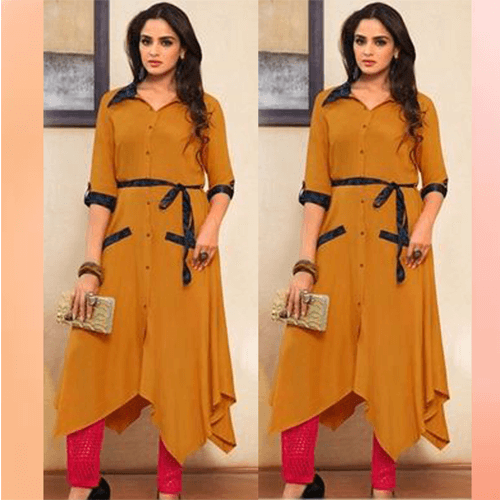Another name of a designer kurti is Trail Cut Kurti showing an alluring pattern of c-cut on the front and back sides. This item is cool to stay different among the casual minds. The style looks charming, so we recommend you to try it on next move of finding a designer kurti. Pick a length which pleases you since it is made in both short, medium and long sizes. You may get it on for casual days as well as for important events.