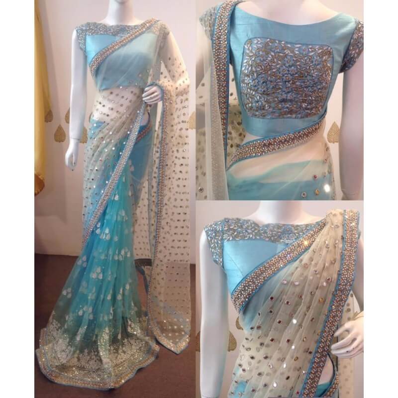 Skyblue Color net heavy embroidery and stone work saree just at Rs 2299/-