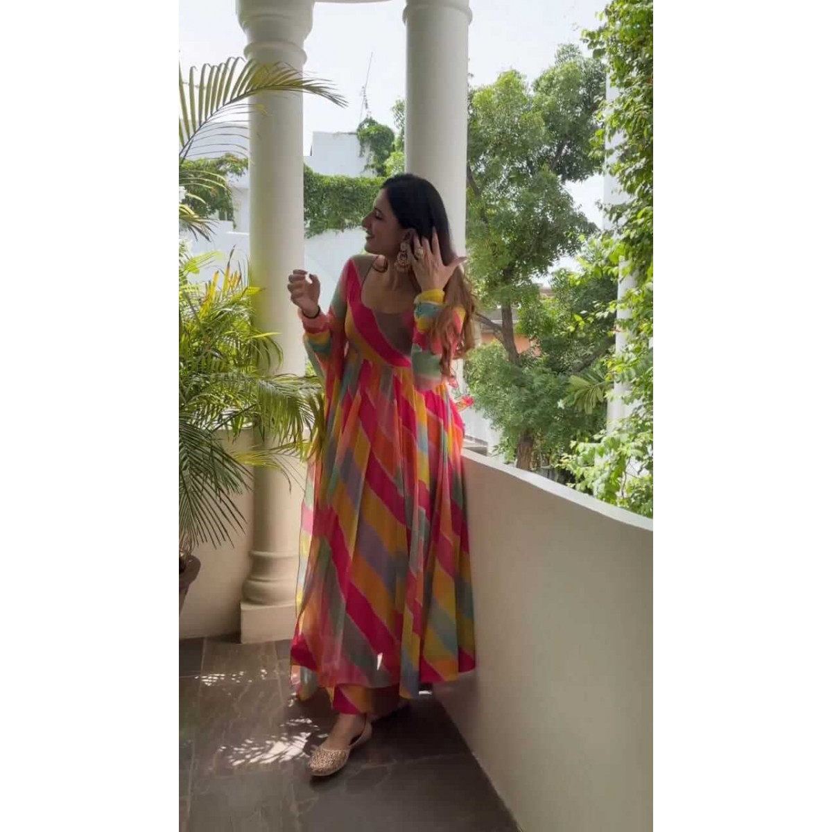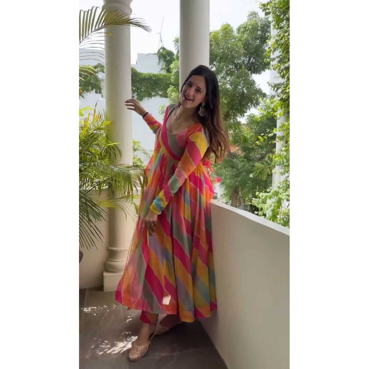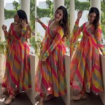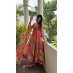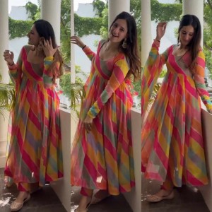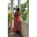 Rainbo patta print tibby silk anarkali suit