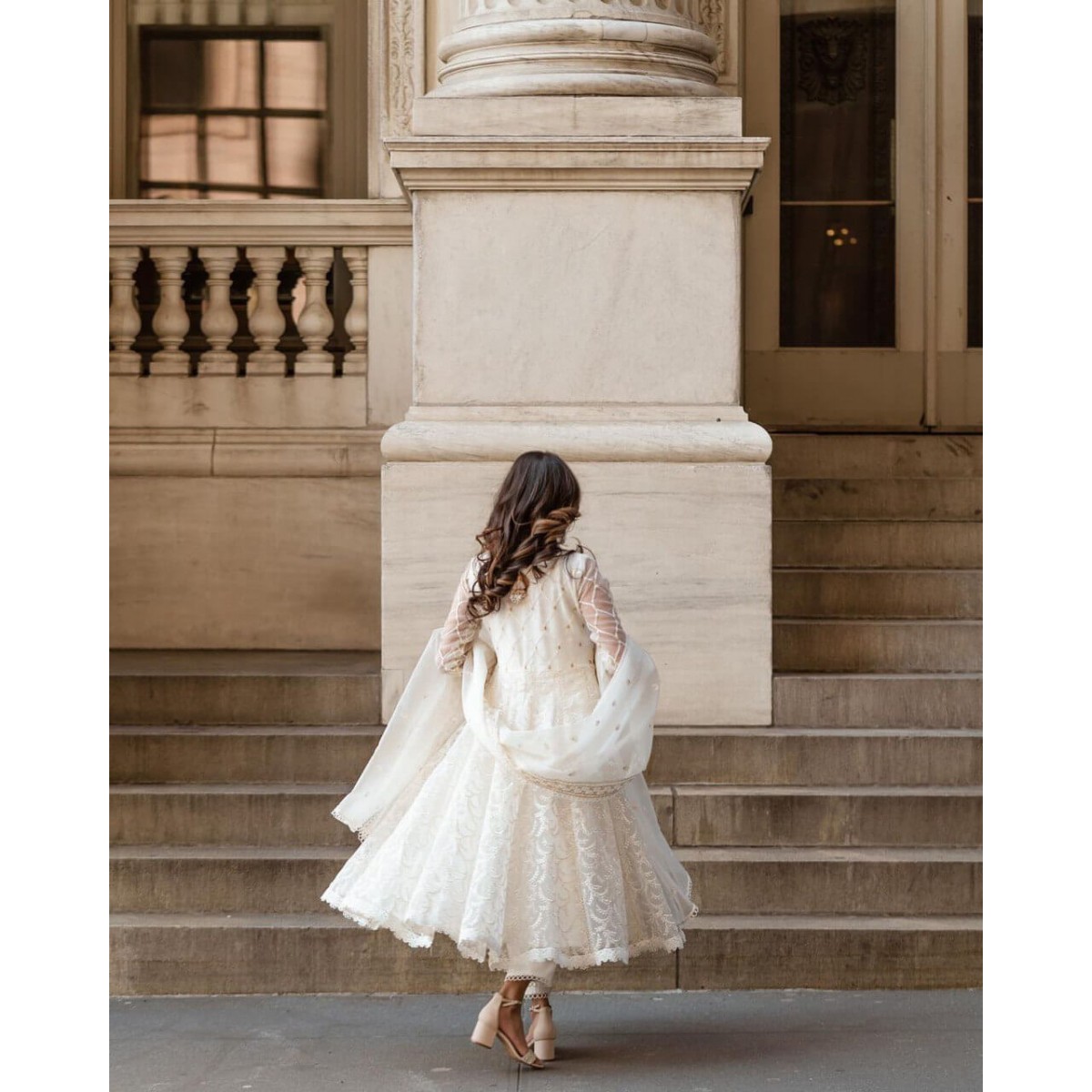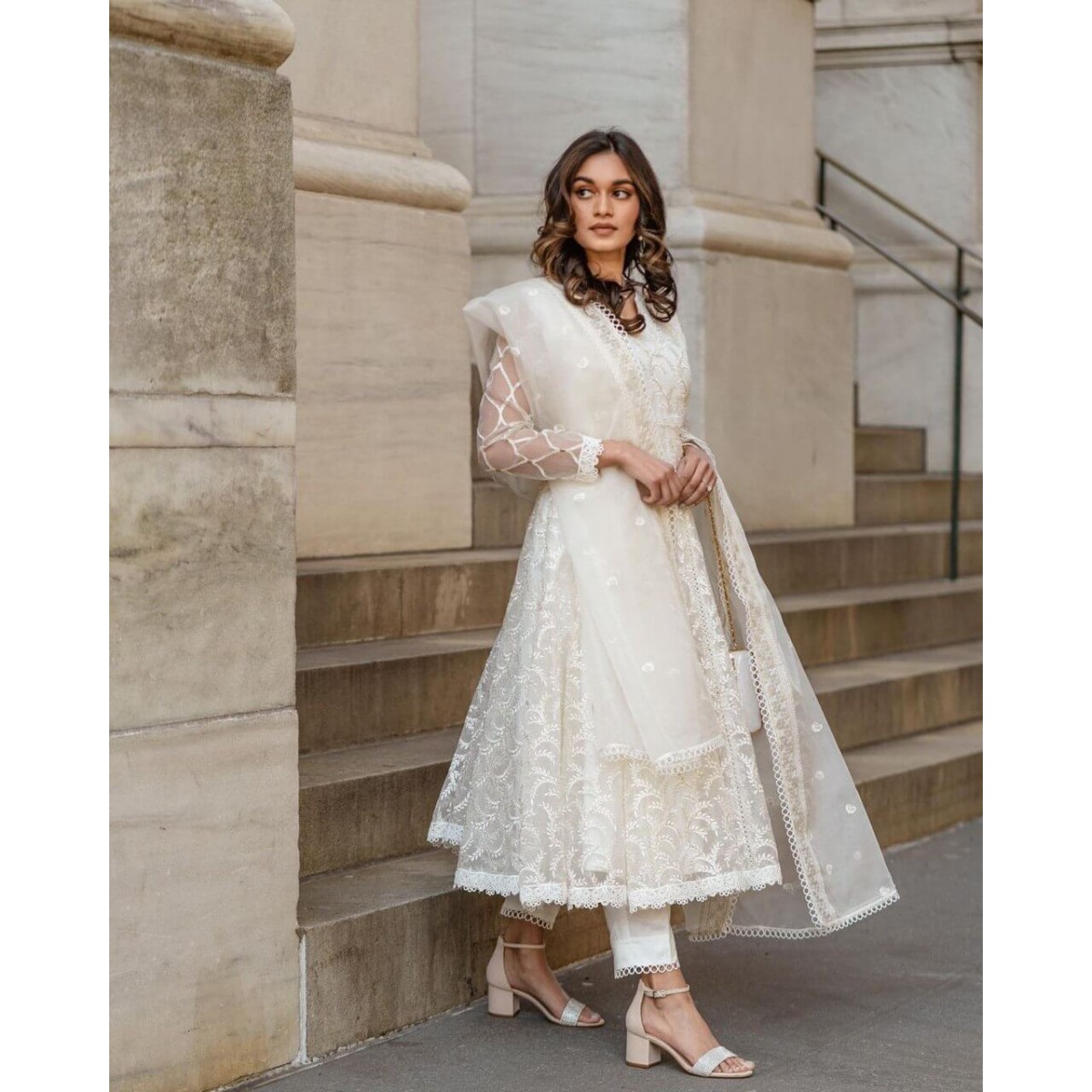 Beautiful white organza fabric anarkali suit