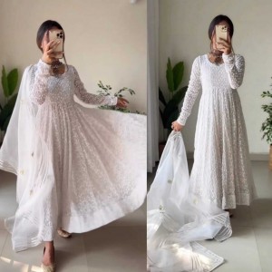 Want to get prepared for a function and want to be classy,White Color Ready made Anarkali Gown with ..
