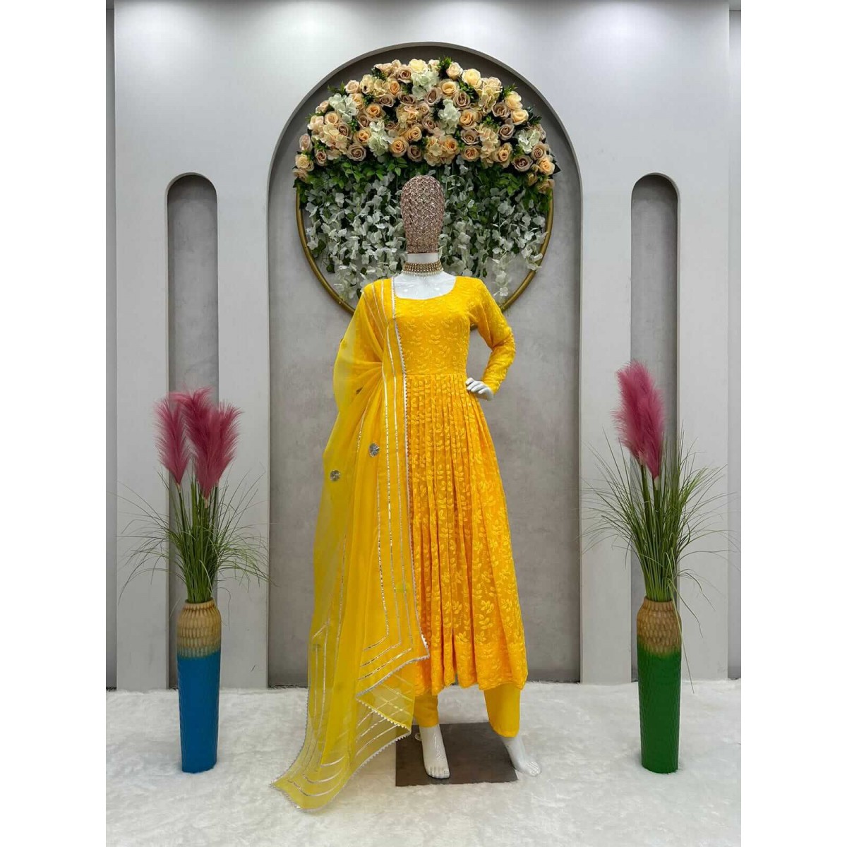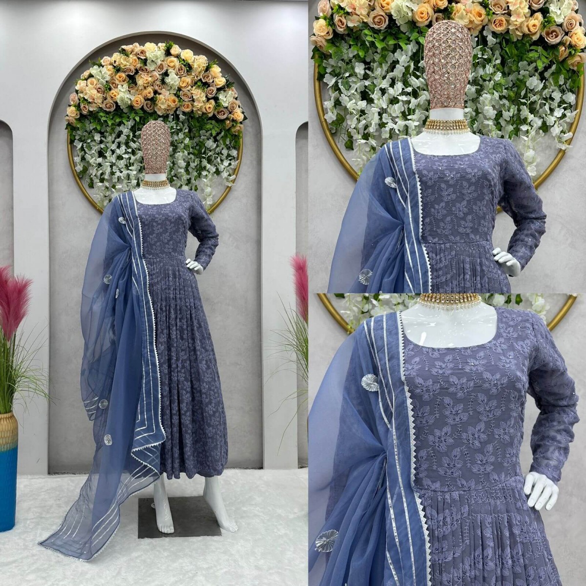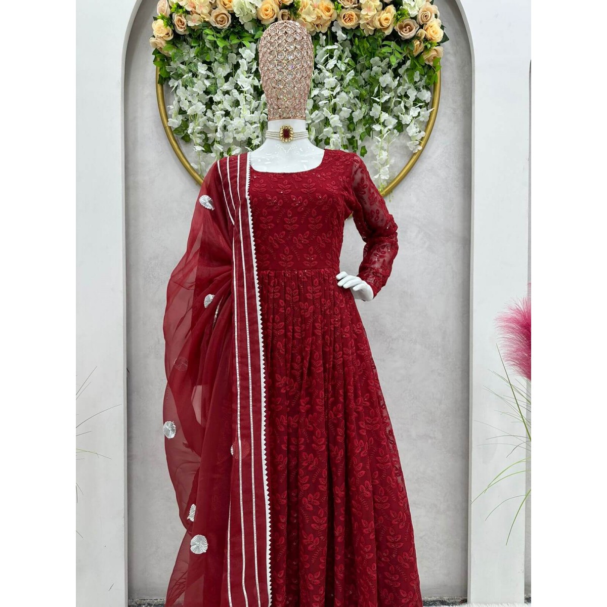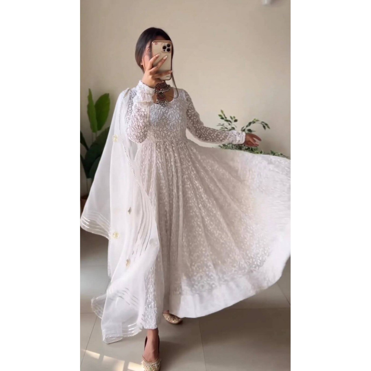Chikan work fluffy anarkali suit