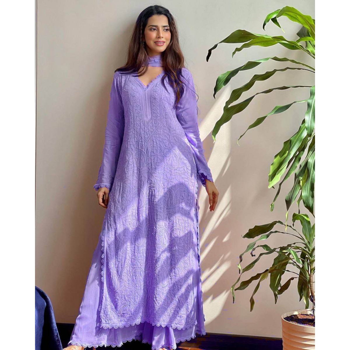 Chikankari Party wear top palazzo dupatta set