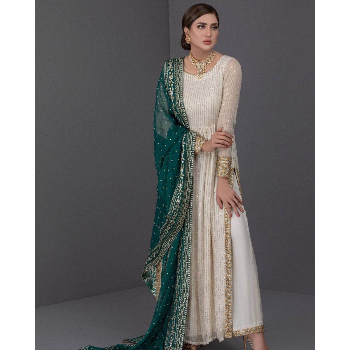 Want to get prepared for a function and want to be classy,White Color Ready made Anarkali Gown with ..