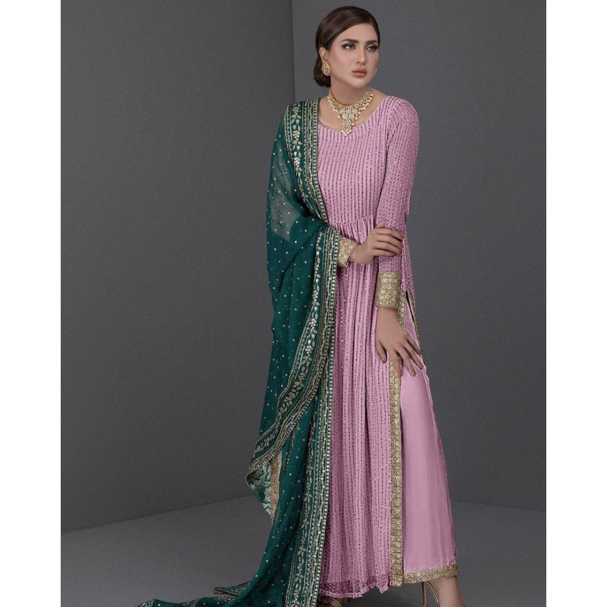 •   DUPATTA FABRICS : HEAVY FAUX GEORGETTE WITH HEAVY EMBROIDERY AND 5mm SEQUENCE WORK
