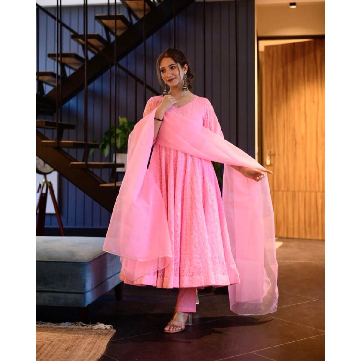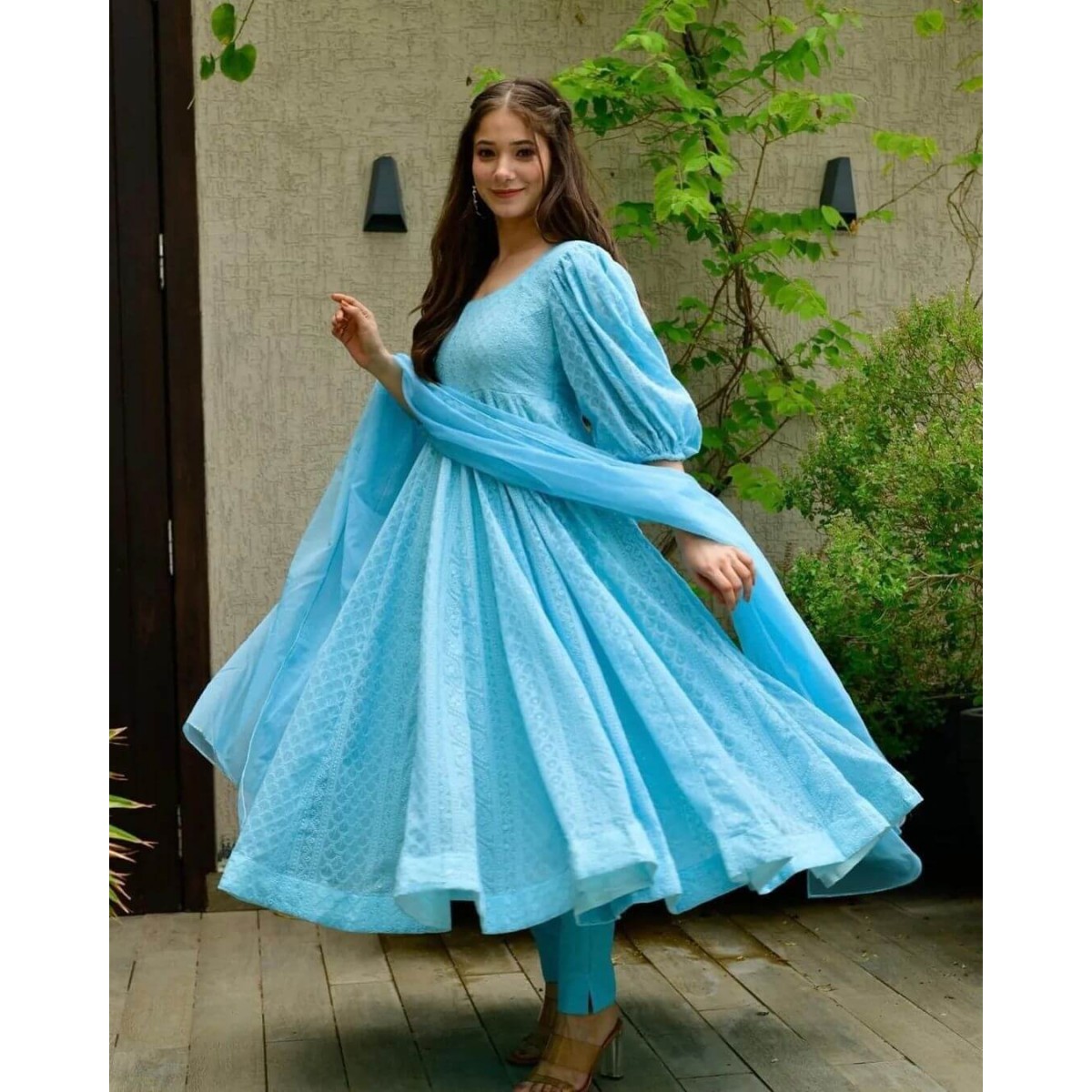Red Color is known to be shubh for any auspicious occasion like wedding or festival and this red color chikankari anarkali suit is the best choice to wear for any auspicious occasion.Sky Color Chikankari Work festival Special Anarkali Suit gives you gracefull look for any party occasion and Baby Pink Color Chikankari Work festival Special Anarkali Suit gives you fresh beautiful look.