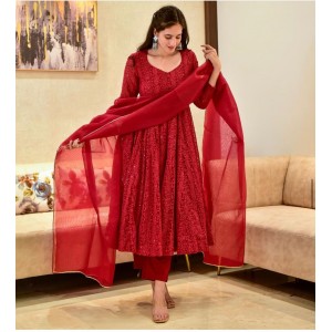 Red Color Chikankari Work festival Special Anarkali Suit | 3 colors available |
