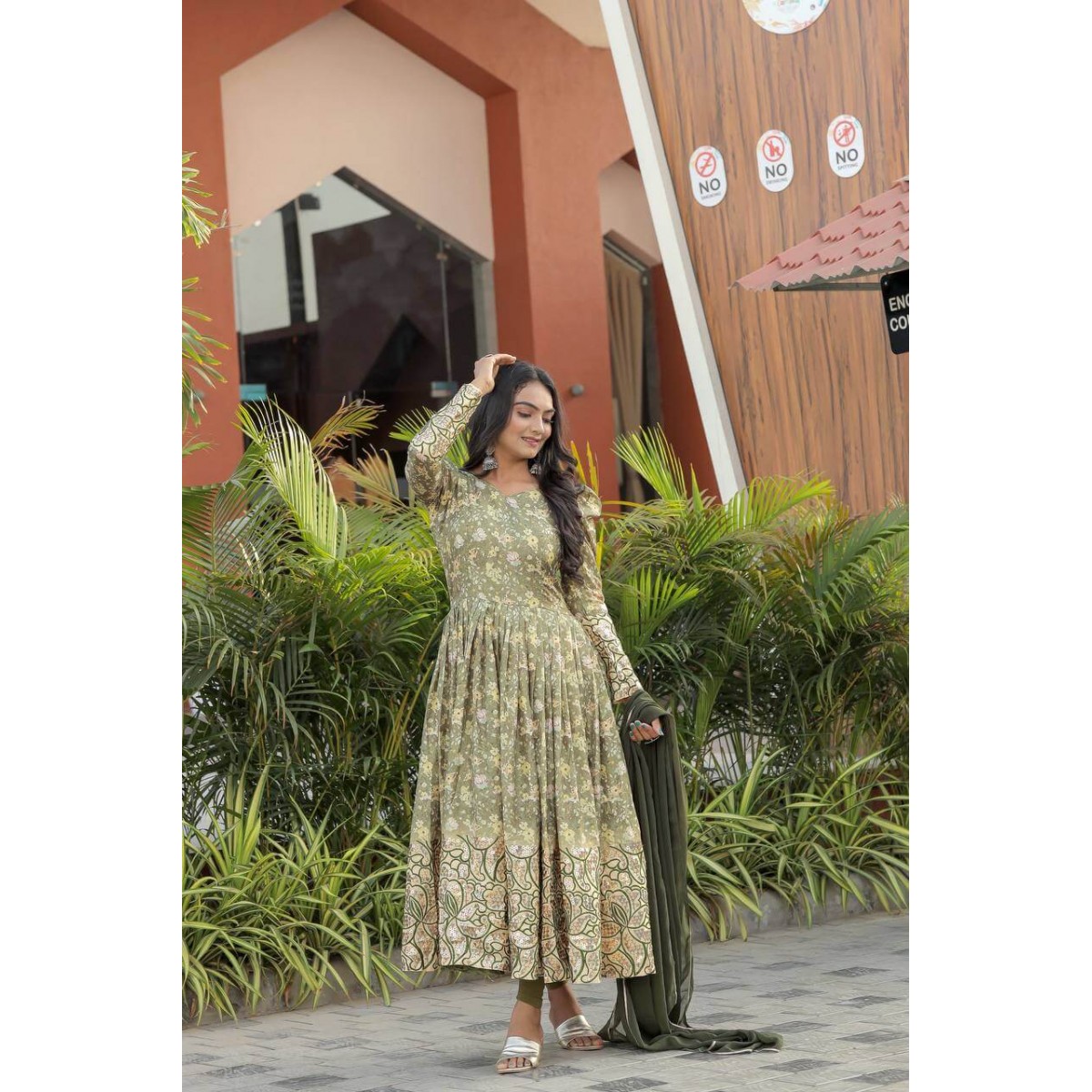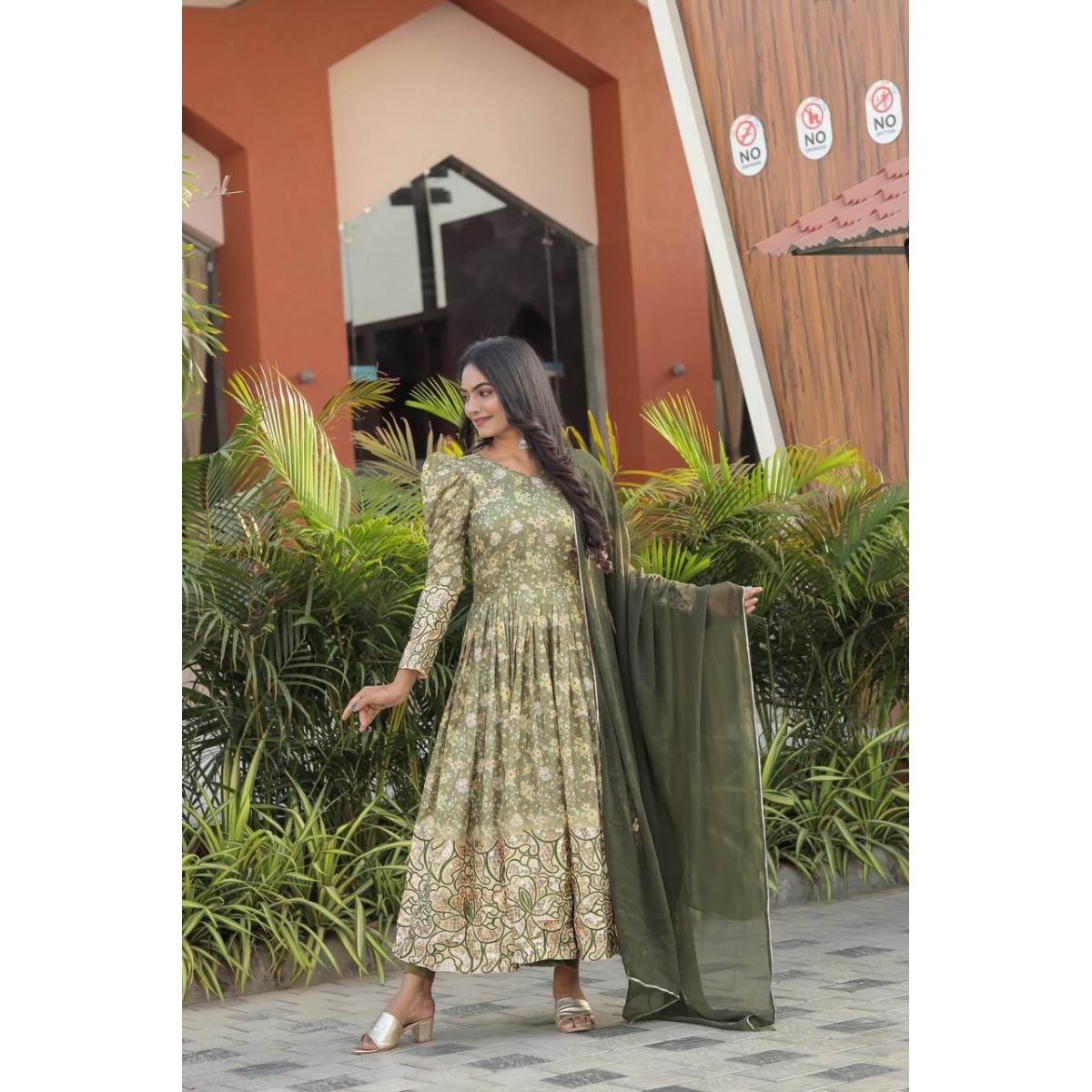 • Anarkali Fabric :- Silk Material And 9mm Rambo Sequence Embroidery Work With Digital Print ( Fully Sleevs )