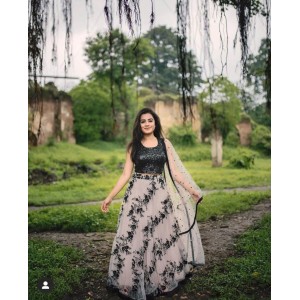 Glamp up your look with Black and White Designer Georgette Lehenga Choli With Black Color Embroidery
