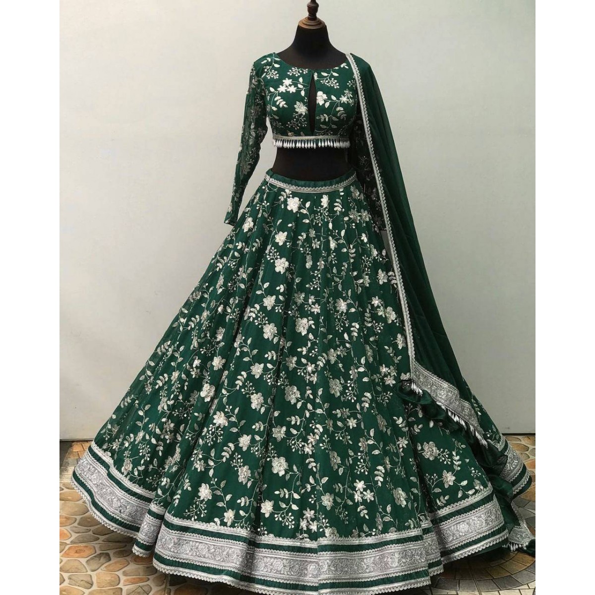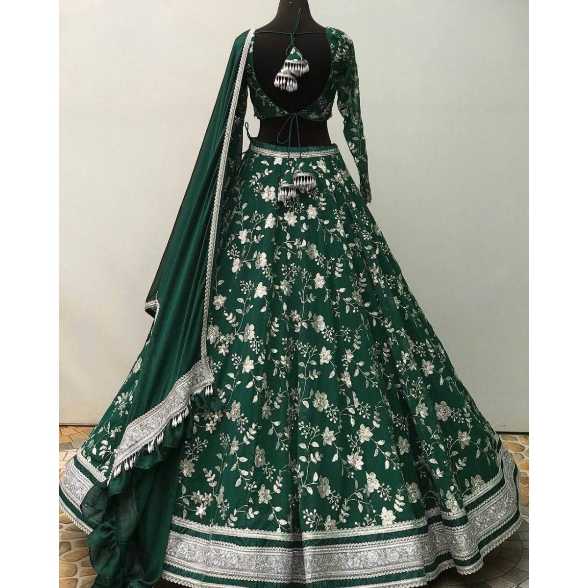 Dark green color designer lehenga choli