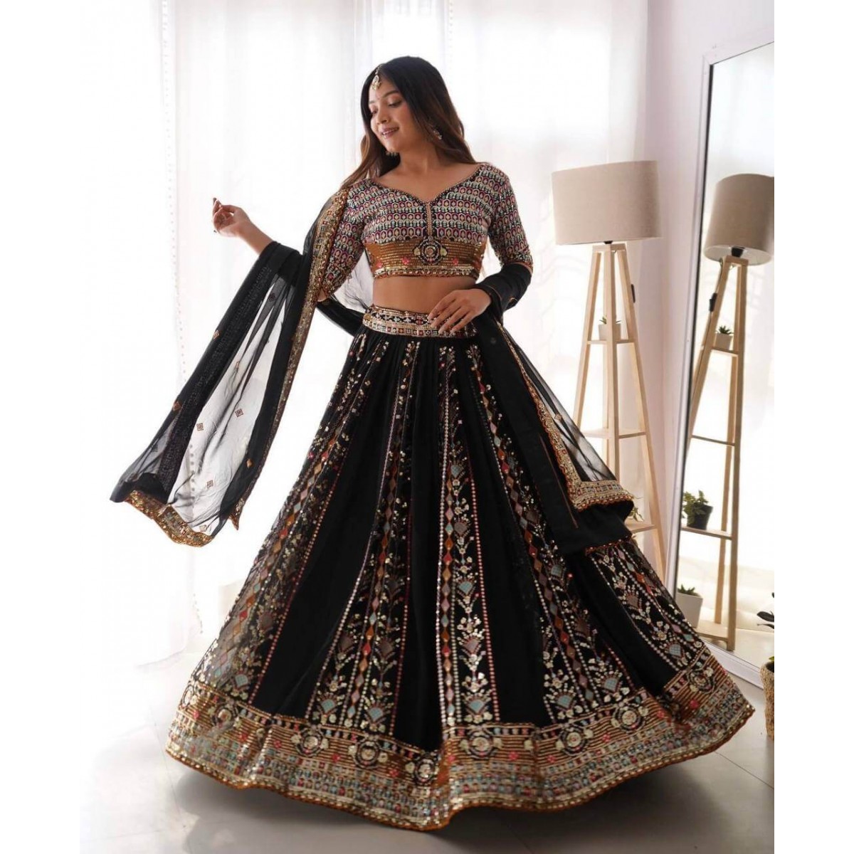 Stunning black evening reception party special lehenga choli
