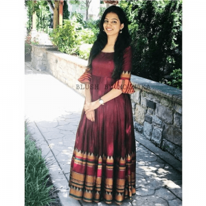 Colored Blus South Indian Wedding Gown Gown Fabric Taffeta Silk Fully Stitched, Gown Length up to 55 Inch