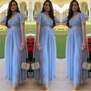 Baby sky color salwar suit for party and wedding