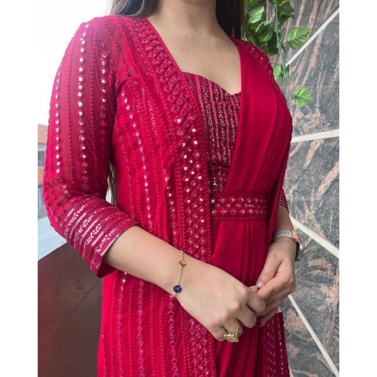 • Saree Fabric : Georgette With Ready To Wear Saree