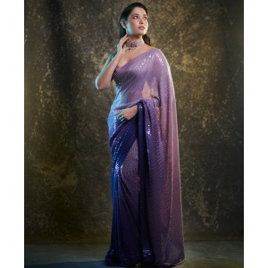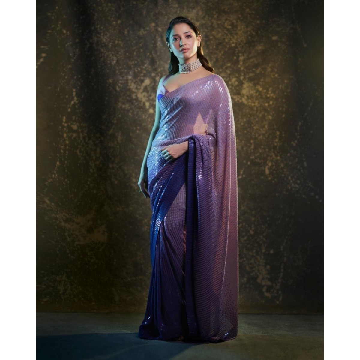 Tamanna Bhatia Deep Purple Shaded Sequence Saree
