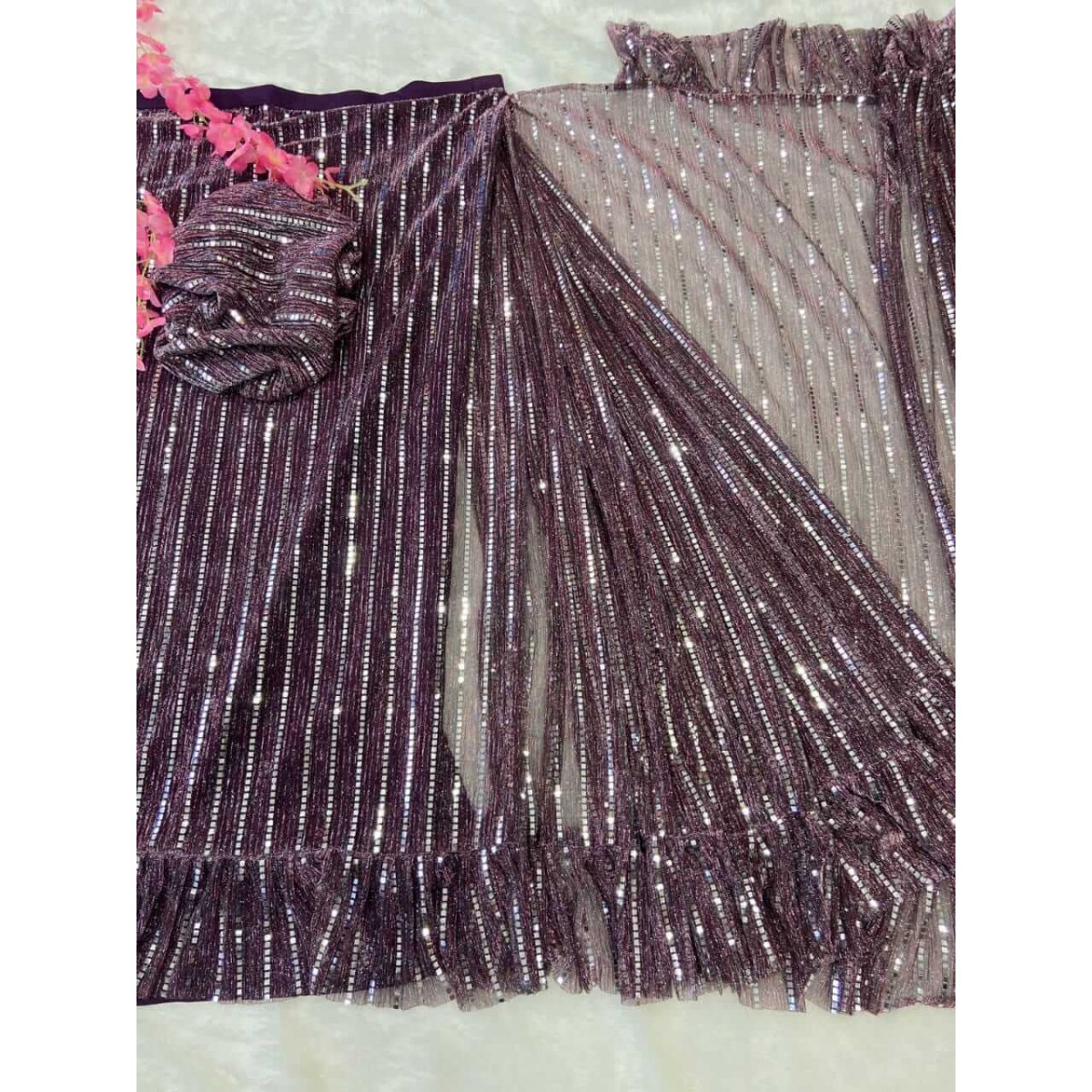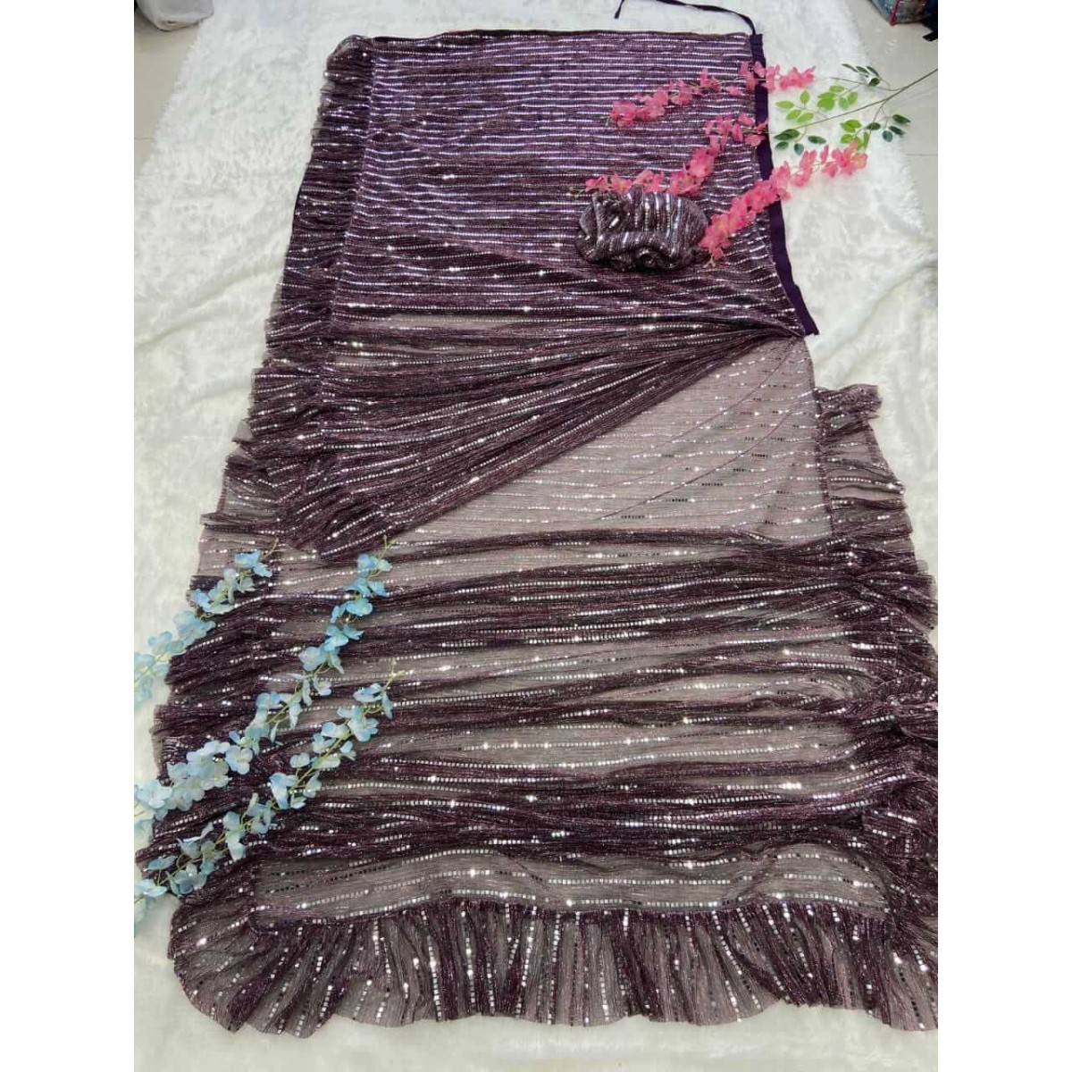 • Saree : Imported Premium Net Embellished With Beautiful Heavy Tikli Work With Heavy Frills With Attached Inner( Ready To Wear )