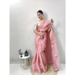 • Saree : Premium Linen Patta Silk With Beautiful Gotta Patti Work( Ready To Wear )