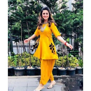 Haldi outfit selection will end with this beautiful Yellow Dhoti Suit . You can also see huge haldi dress collection here.