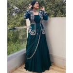 Royal Blue Butti Stylish Wedding Gown and Dupatta Gown Fabric Taffeta Silk Fully Stitched, Gown Leng..