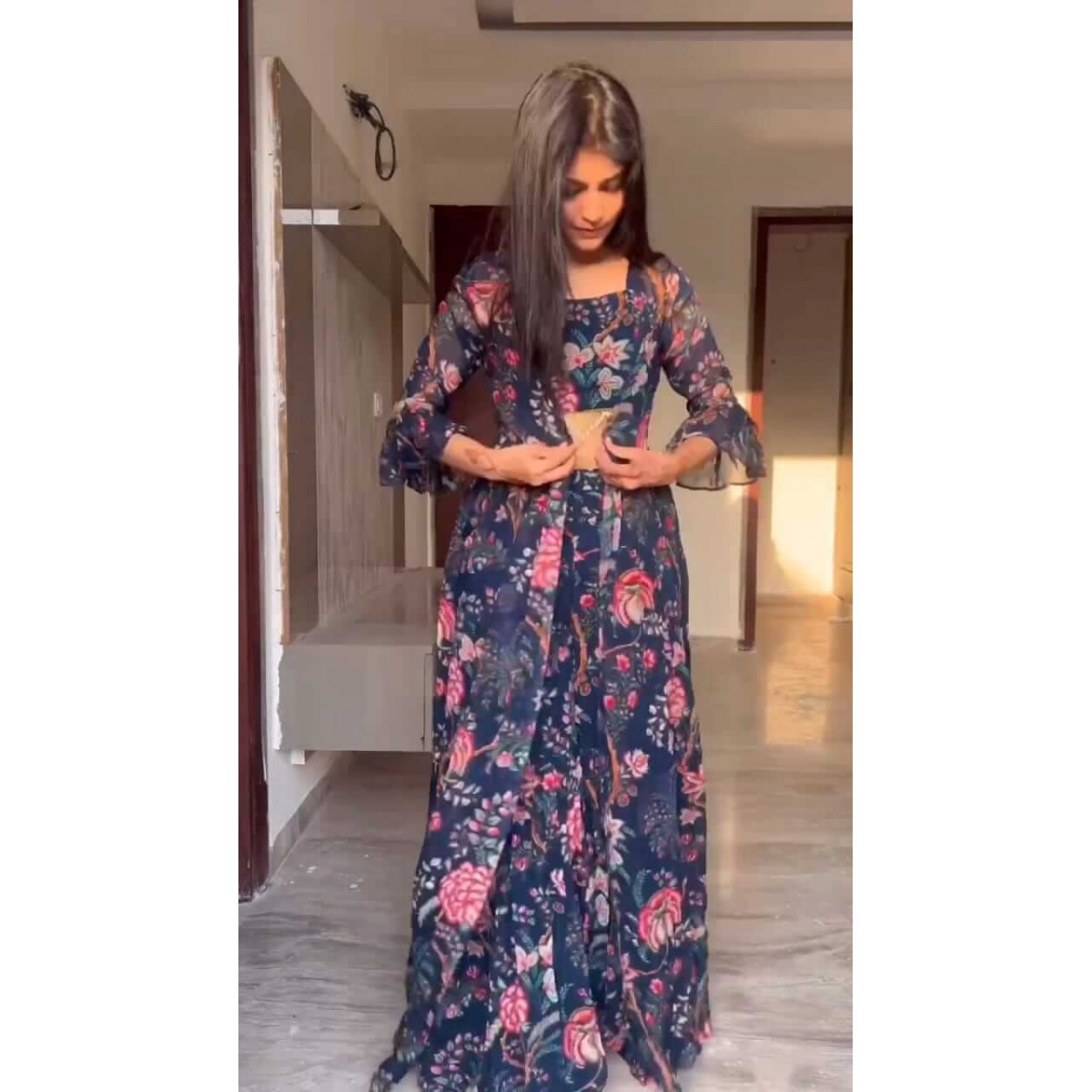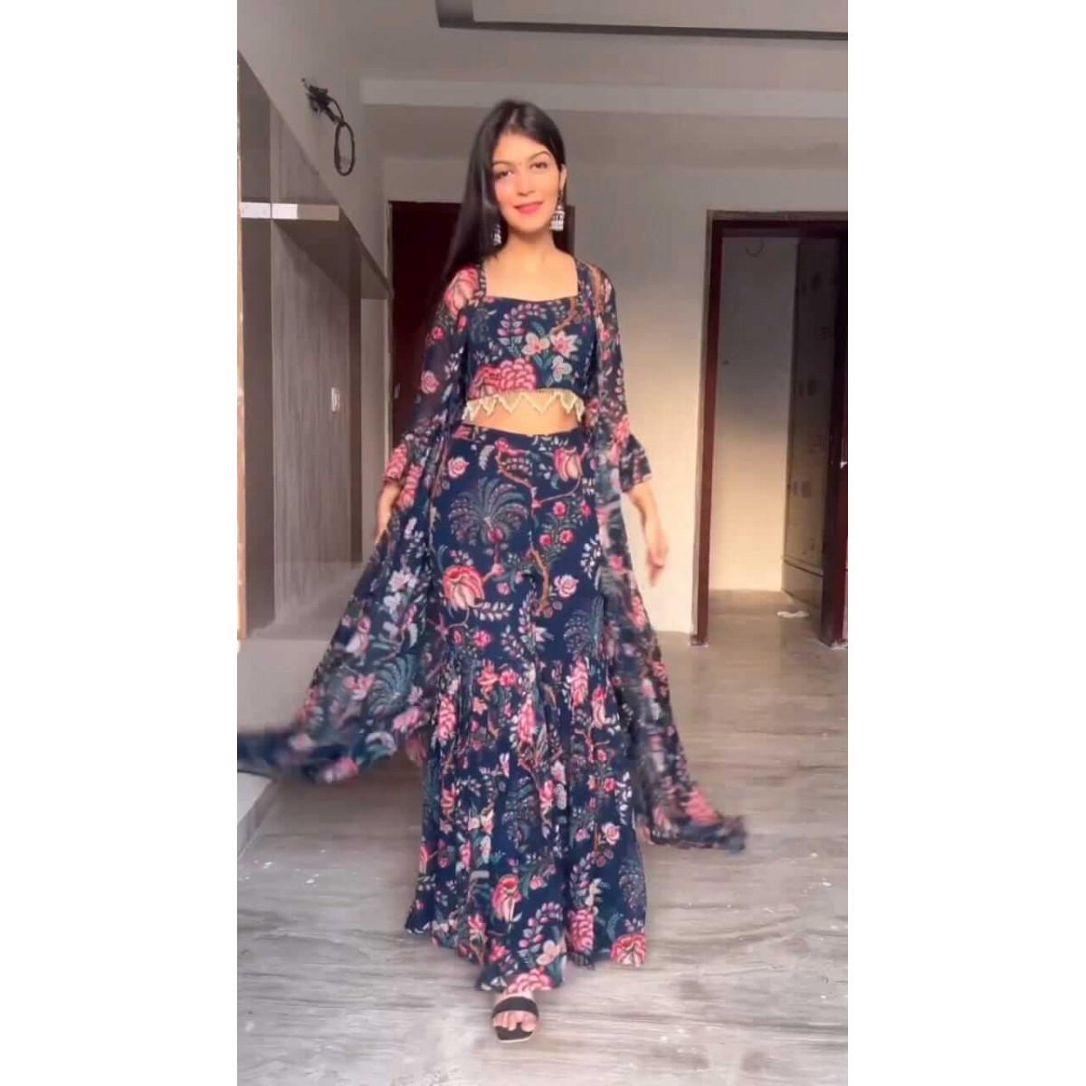 Floral blouse sharara koti dress