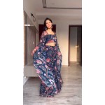 • Blouse : Premium Georgette With Beautiful Print With Inner( Unstitched With Pearl Lace For Blouse Design )