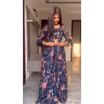 Royal Blue Butti Stylish Wedding Gown and Dupatta Gown Fabric Taffeta Silk Fully Stitched, Gown Leng..