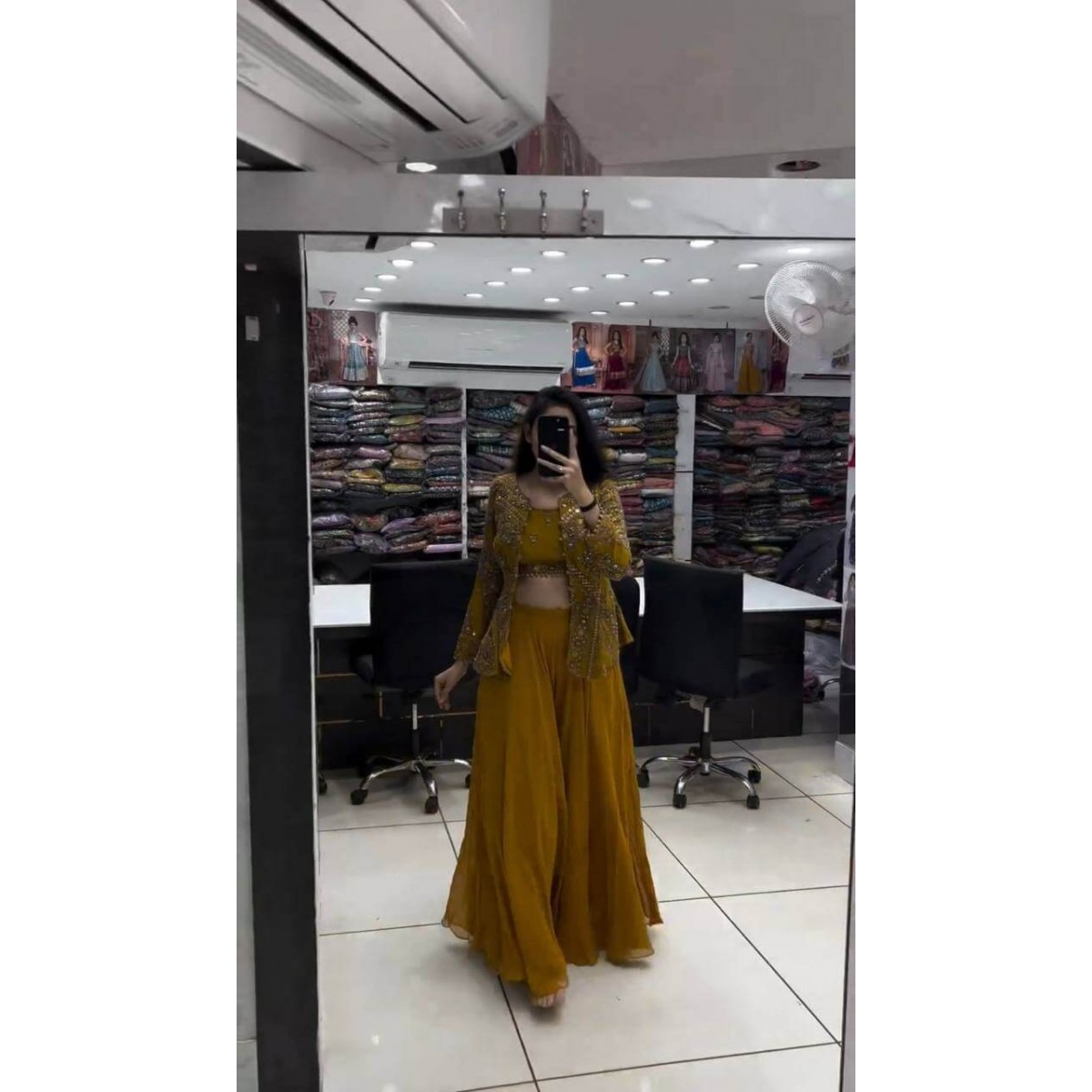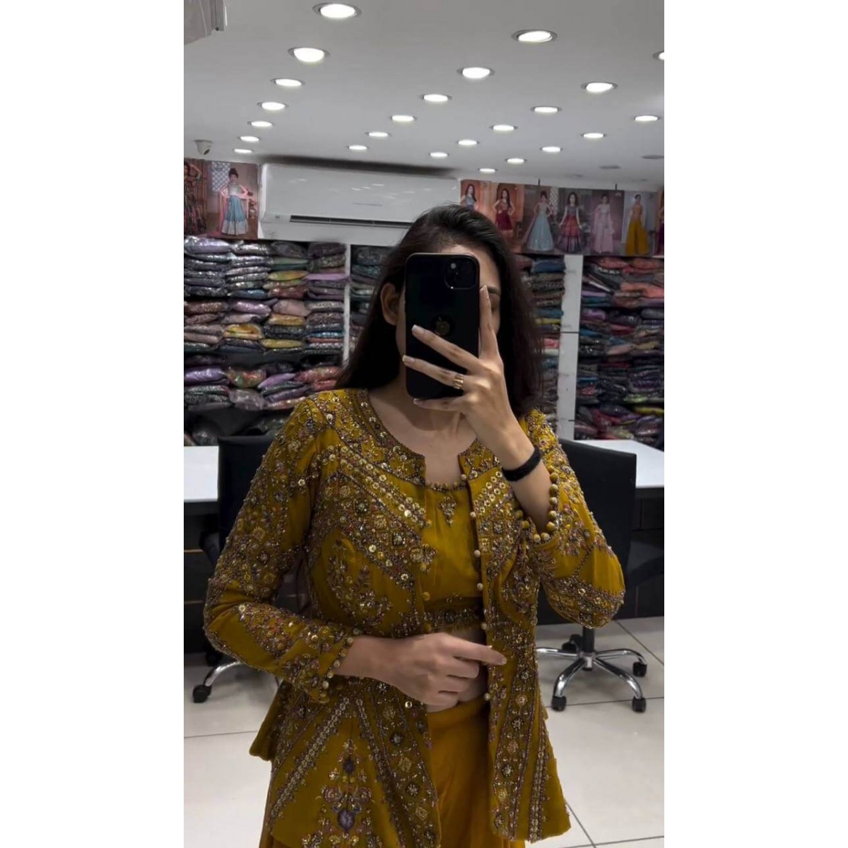 Haldi and mehndi ceremony jacket outfit