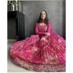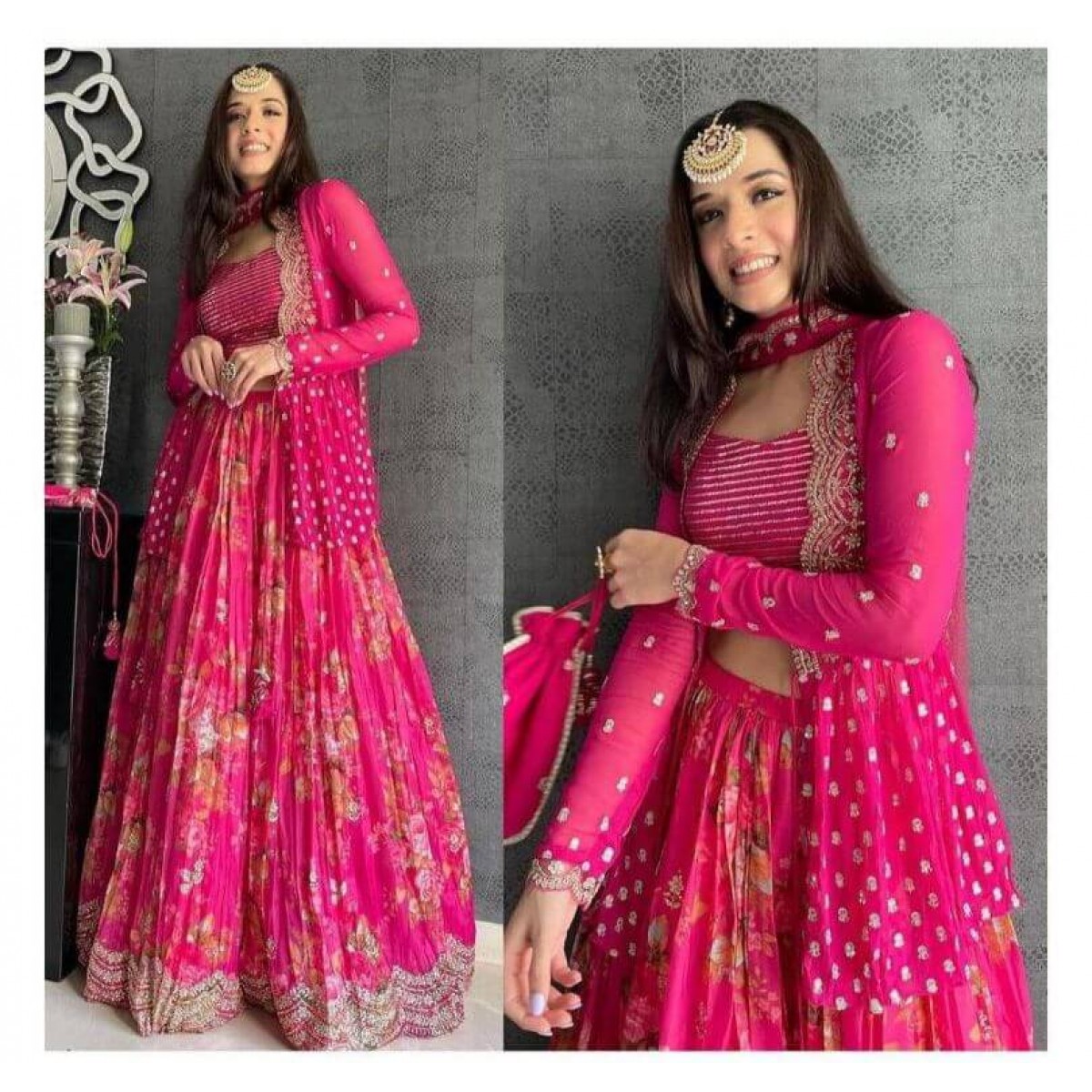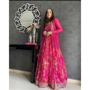 Lehenga Fabrics: Georgette Digital Print Heavy Embroidery Sequence Cut Work Lehenga