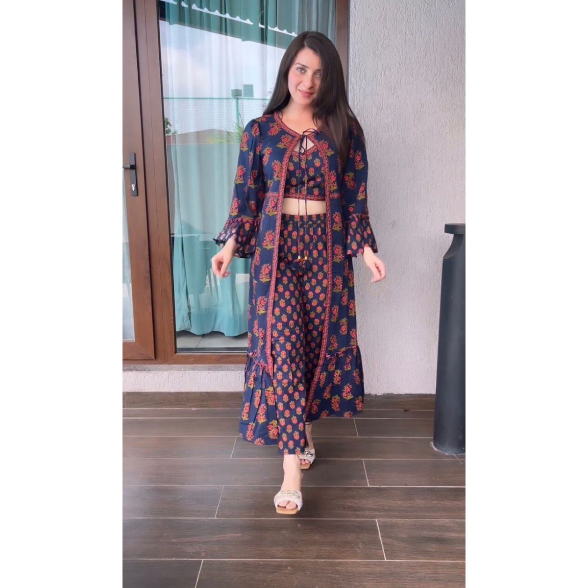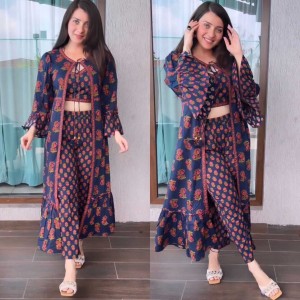 • KOTI SLEEVES : DIGITAL PRINT RUFFLE WITH FANCY LATKAN