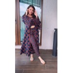 Purple Indowestern Cotton silk flore length suitTop-Cotton silkBottom-Cotton silk ..