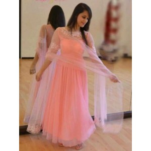 Peach Color Fluffy Full Stitched Anarkali Gown with Dupatta