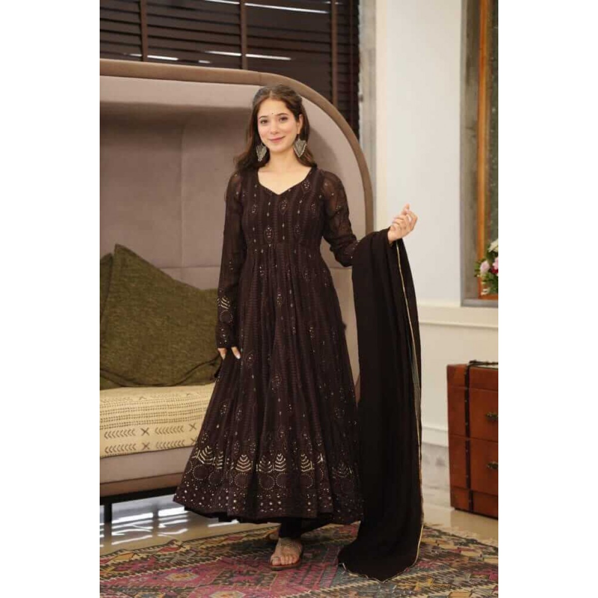 • Top fabric Heavy quality faux Georgette with full sleeve and latkan with embroidery work.