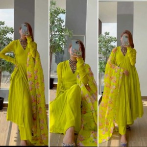 Neon Color Anarkali Suit with Beautiful Dupatta