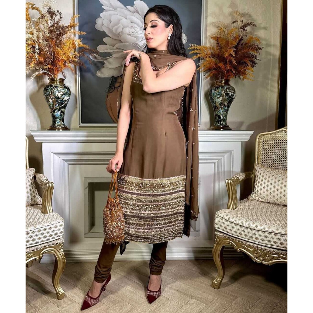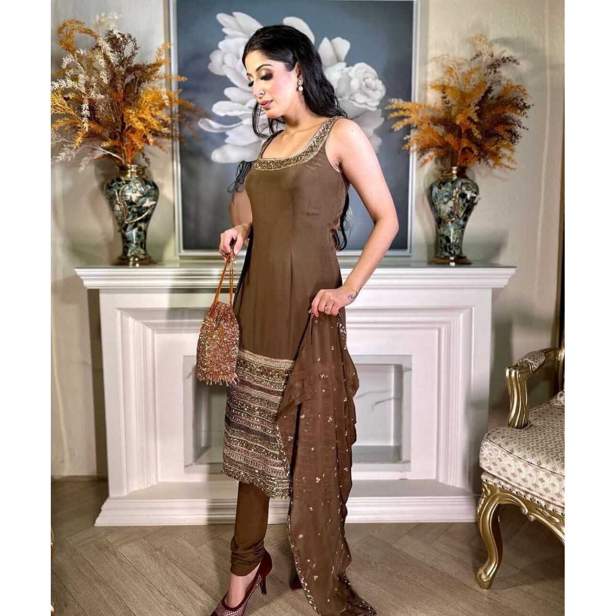 Package details: 1top/1 bottom/1 dupatta/1 belt  Top fabric Heavy Pure tabby org..