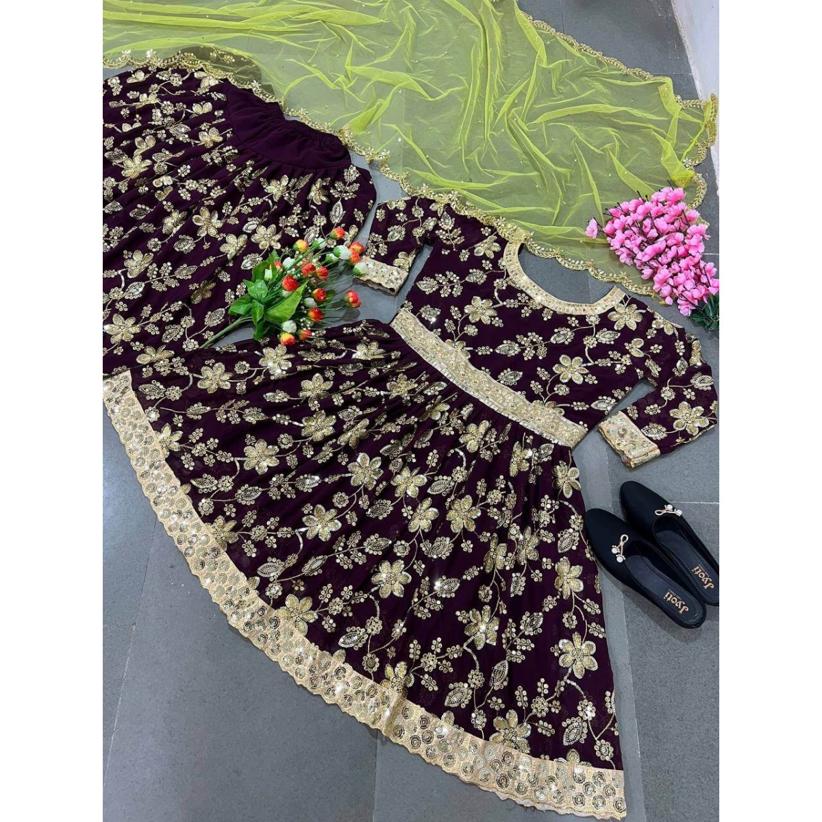 • Top Fabric * :Faux Georgette With Heavy *Embroidery 5mm Sequence Work With Sleeve