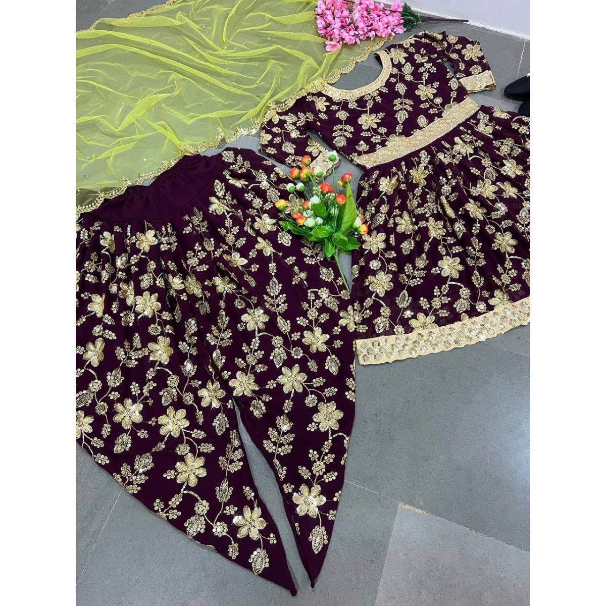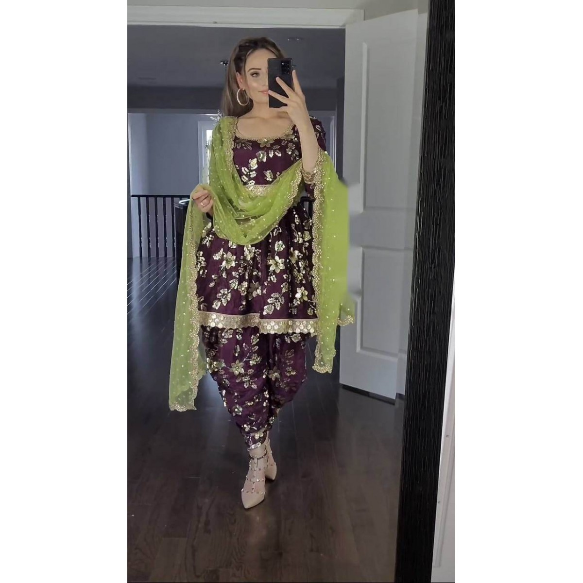 Beautiful flower and leaf sequence work Punjabi patiala dhoti suit