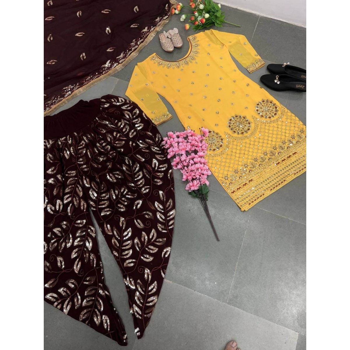 • Dhoti Salwar :Faux Georgette With Embroidery 5 mm Sequence Work