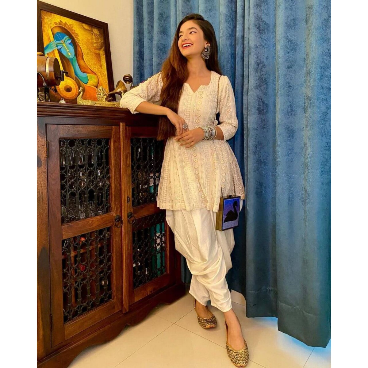 Stylish white color full stitch patiala suit